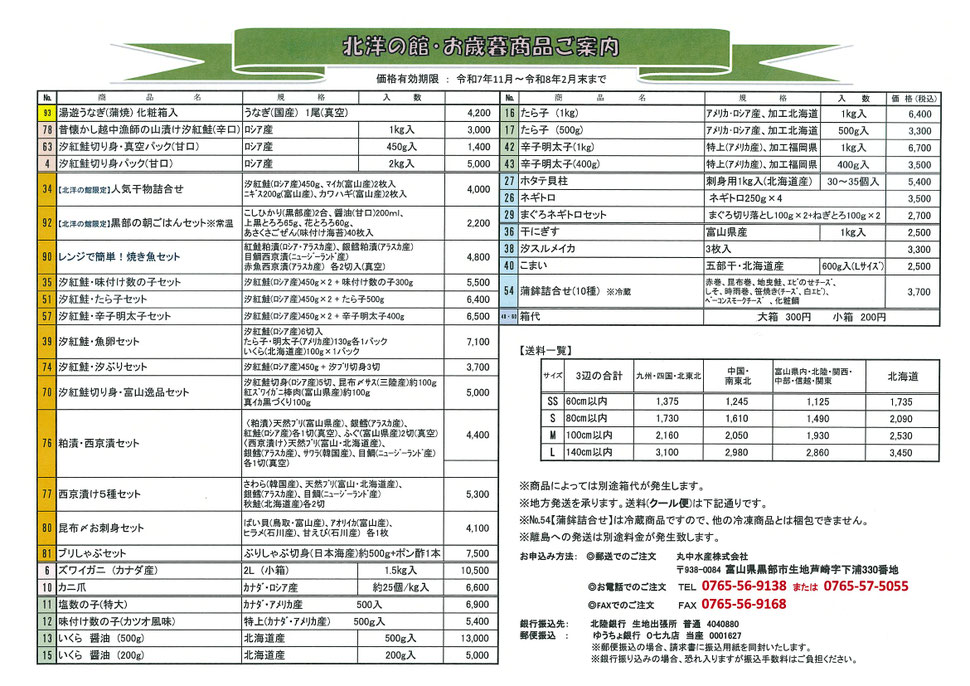 今年もこの季節がやってまいりました。2025年もあとわずか。大切な方へ、頑張った自分へ、北洋の館のお歳暮はいかがですか。お歳暮商品のカタログに自慢の商品をのせました。貰って喜ばれる一品たちです。掲載商品以外にも、北洋の館では各種干物など、たくさんの商品をご用意しております(取り扱い商品)。お問い合わせください。
