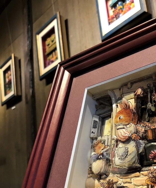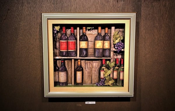 本日は1月の倉庫ギャラリーのご紹介をば。平面なはずの絵を立体的に魅せるシャドウボックスの展示会であります!その名も「ワイン&メルヘンハウスの世界」by高橋教室のみなさま。