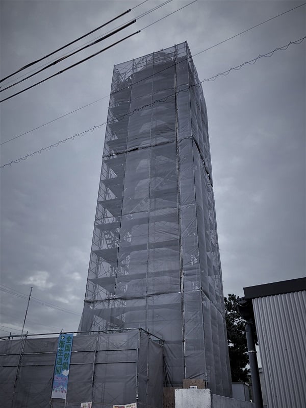 さてさて、北洋の館の目の前にある「生地鼻灯台」。ただ今お化粧直し中でございます。長年の雨あられ風雪に耐えてきた灯台の塗装はハゲハゲでした。ついに予算がおりた様子。今の灯台はこんな感じ。