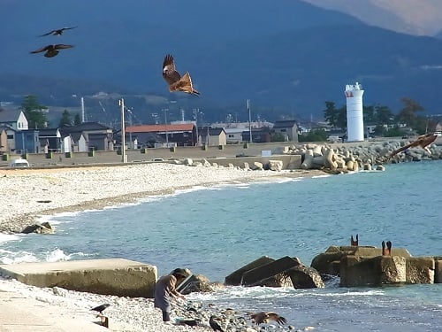 海を綺麗に撮ろうとすると山が見切れるっていうかぼけるというか、山に焦点をあてると海が…。結果的に魚をあげるご婦人に群がる海鳥たちの構図になってしまった10年以上前の思い出の一枚。撮りたいものが撮れない。やっぱりこういうところからよねプロと素人の技量の差って。この展示会のアーティスト、角谷さんは数々のフォトコンテストで受賞している写真のプロでございます。