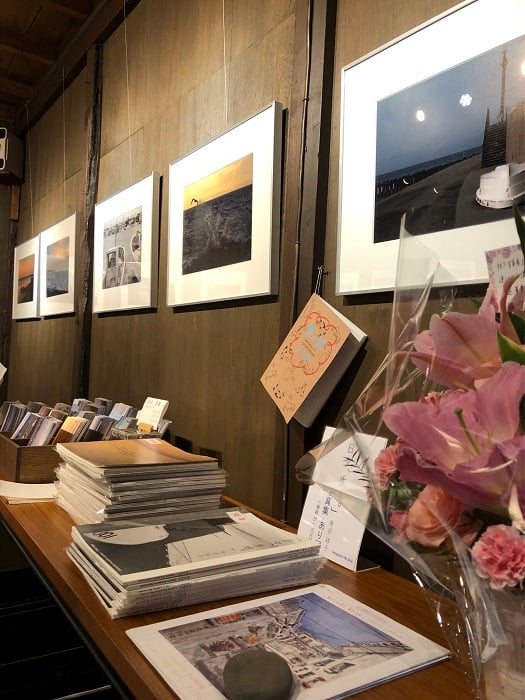 ここ(↓)は北洋の館からすぐの場所で、雪山と浜辺が素晴らしく綺麗に見えるスポットです。この夏、ここの波消しブロックに閉じ込められていたところを海に返した鰯は元気にしてるだろうか・・・1匹だから食べられちゃったかな。いや、逆に群れじゃないから捕食者に見つかりにくいかも。と、地元民が見ると余計な注釈がつく写真展でもある。